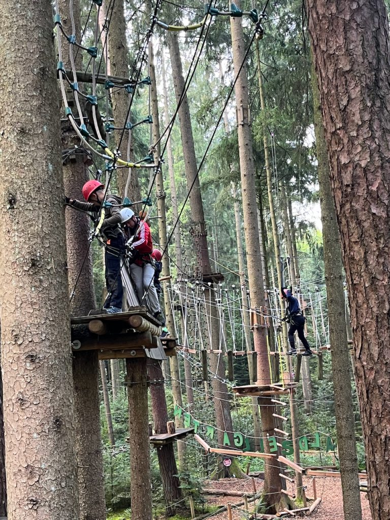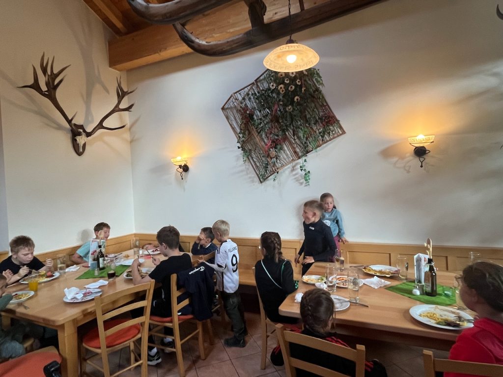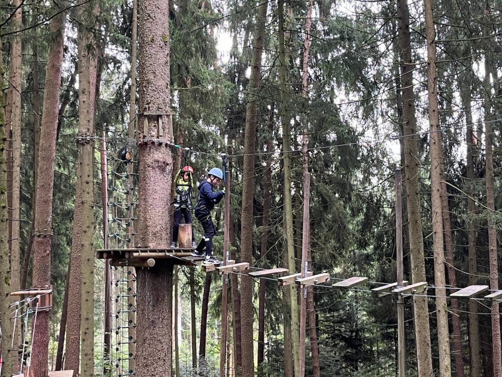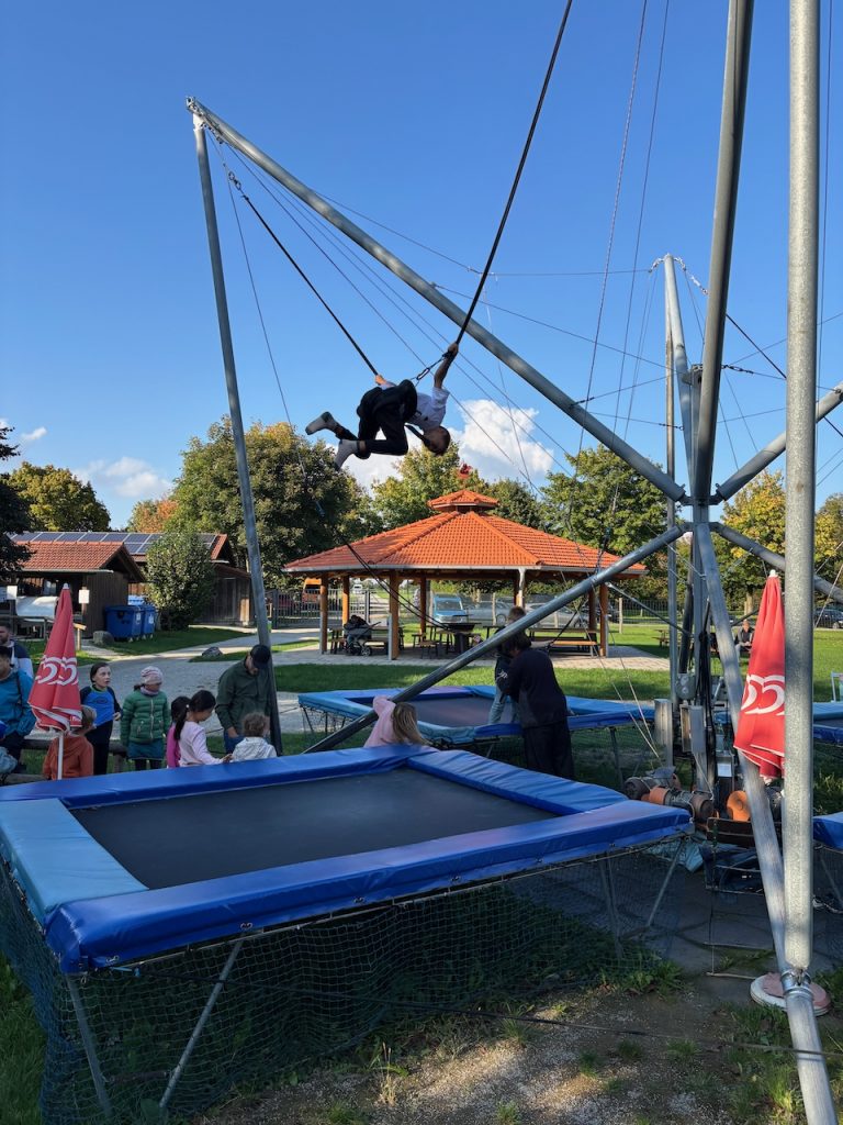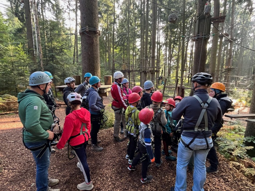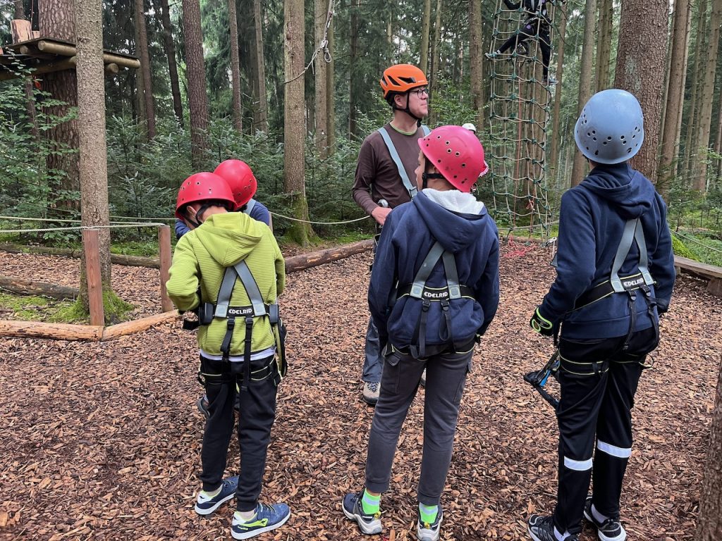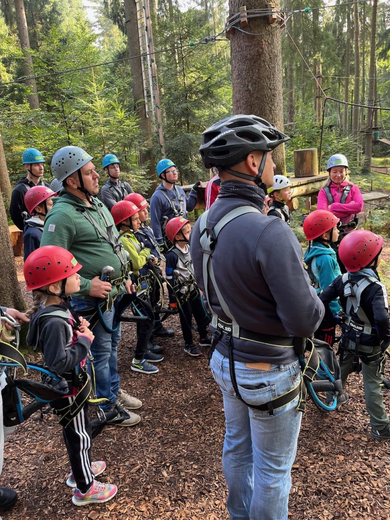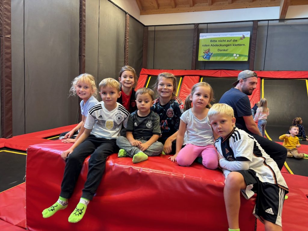 Dieses Jahr ging es mit den Kindern und Jugendlichen wieder nach Oberreith. Insgesamt waren 23 Kinder und 14 Erwachsene dabei. In der Früh ging ein Großteil der Kinder direkt zum Waldseilgarten. Nach kurzer Einführung durften die Kids ca. 3 Stunden ihre Kletterkünste in den Bäumen unter Beweis stellen. Gegen Mittag trafen wir uns wieder gemeinsam zum Mittagessen. Nachmittags waren alle Kinder ob im Trampolin, Indoor oder auf dem großen Outdoorspielplatz sehr gut beschäftigt.