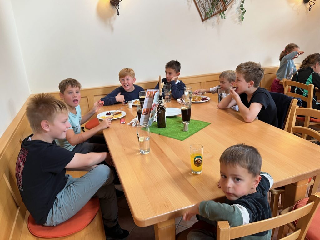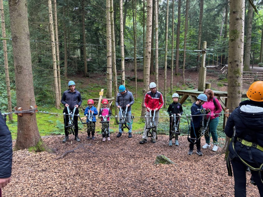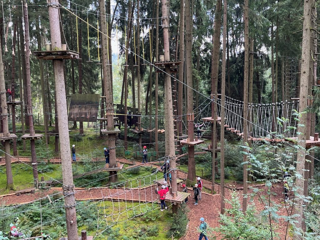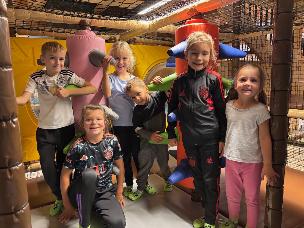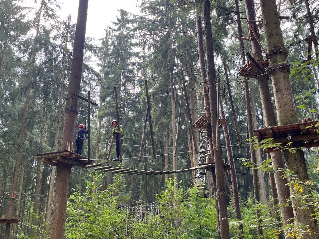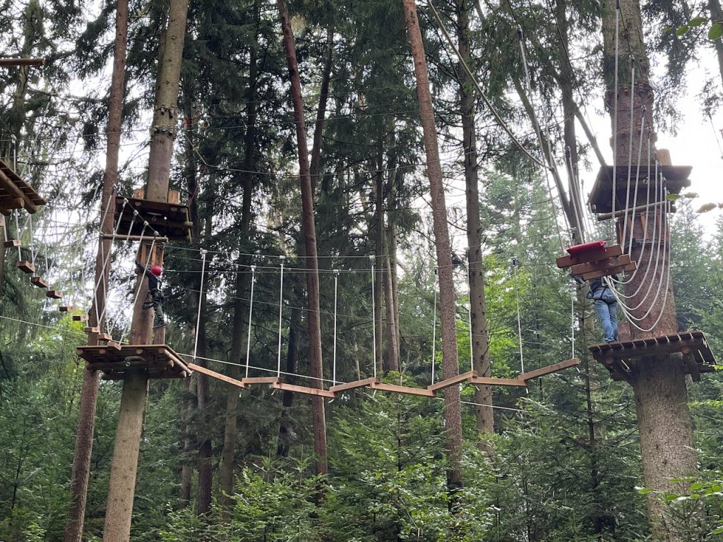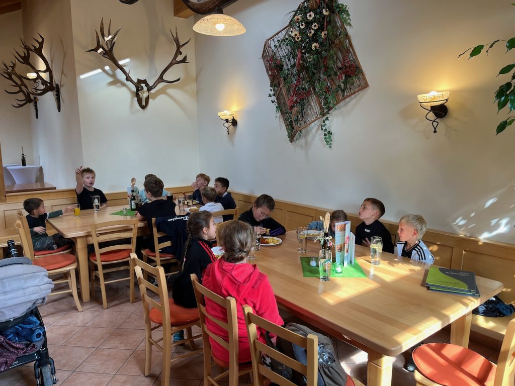 Dieses Jahr ging es mit den Kindern und Jugendlichen wieder nach Oberreith. Insgesamt waren 23 Kinder und 14 Erwachsene dabei. In der Früh ging ein Großteil der Kinder direkt zum Waldseilgarten. Nach kurzer Einführung durften die Kids ca. 3 Stunden ihre Kletterkünste in den Bäumen unter Beweis stellen. Gegen Mittag trafen wir uns wieder gemeinsam zum Mittagessen. Nachmittags waren alle Kinder ob im Trampolin, Indoor oder auf dem großen Outdoorspielplatz sehr gut beschäftigt.