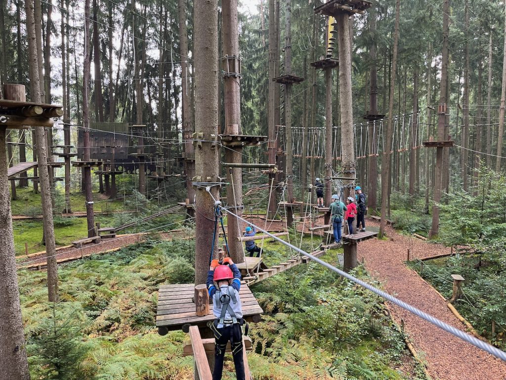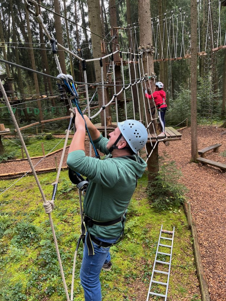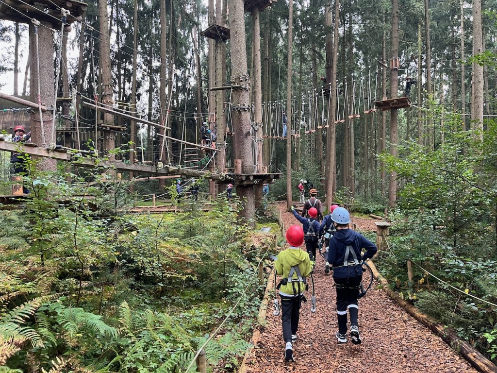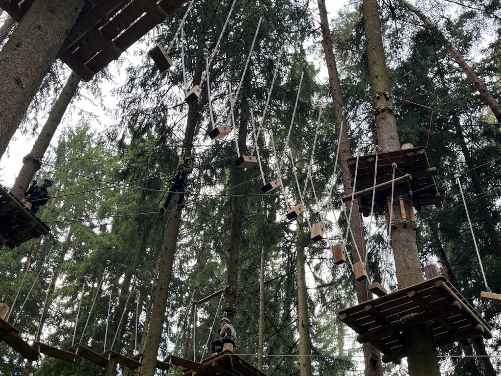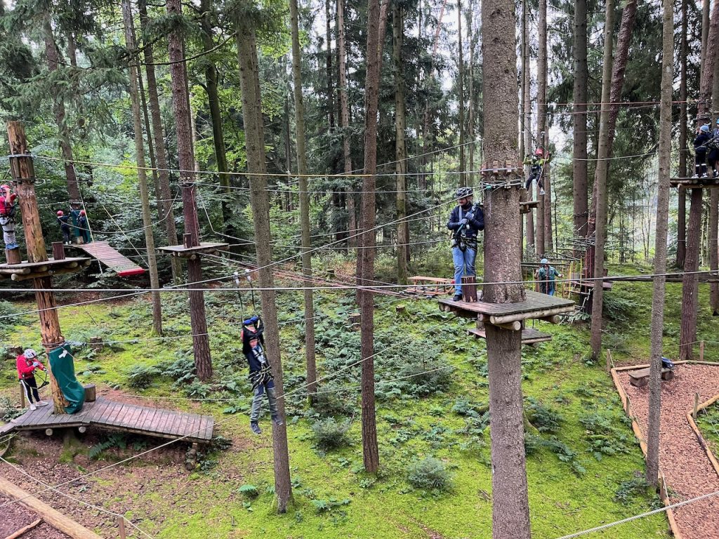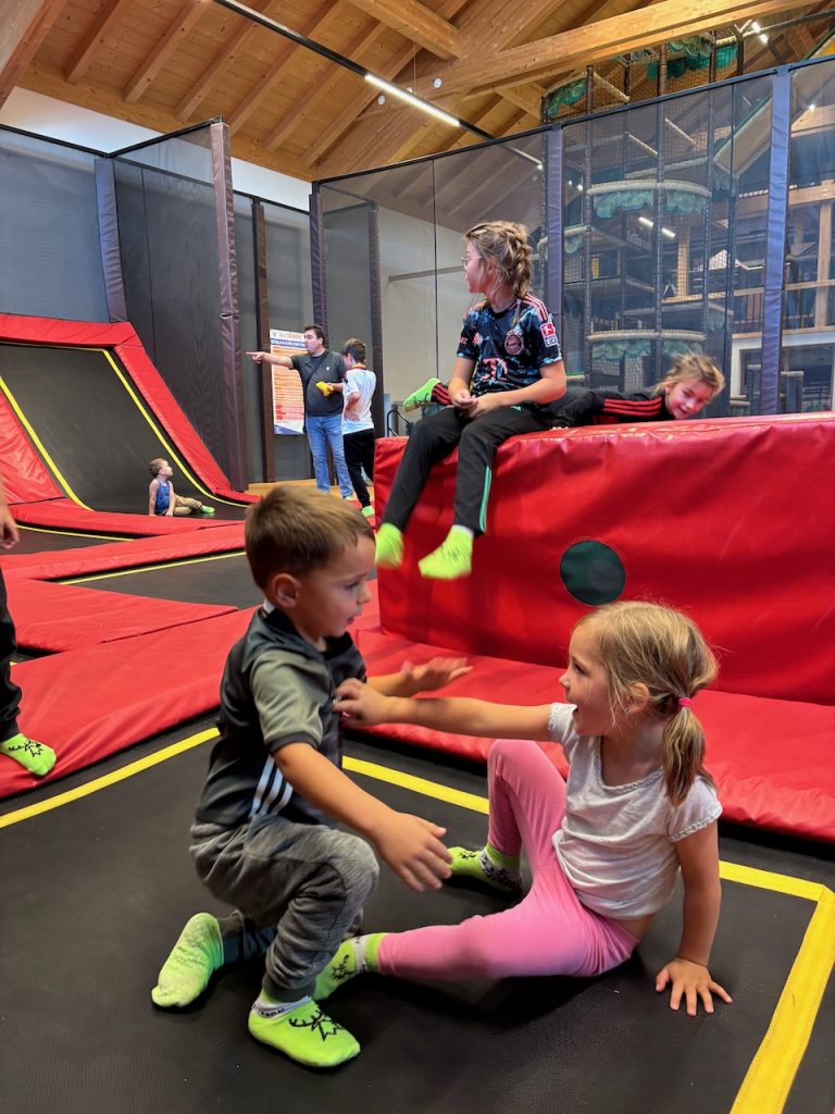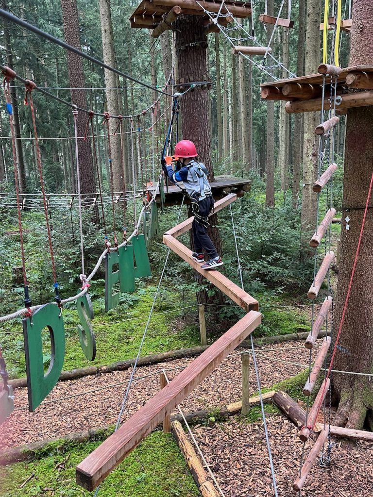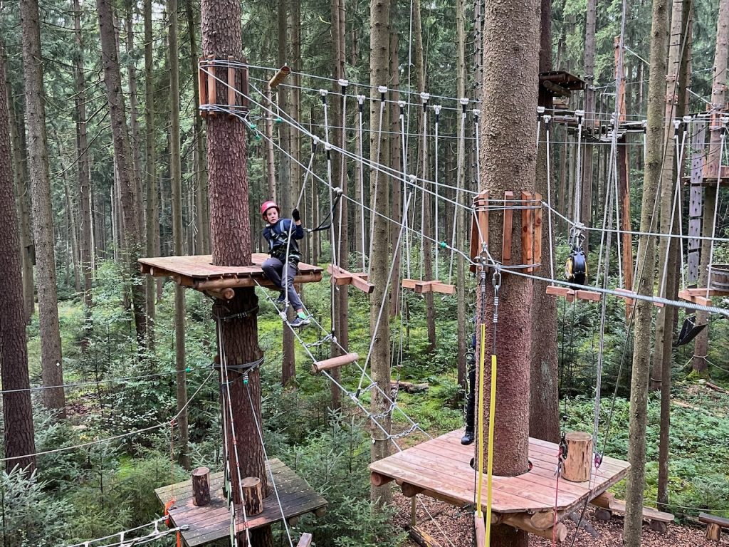 Dieses Jahr ging es mit den Kindern und Jugendlichen wieder nach Oberreith. Insgesamt waren 23 Kinder und 14 Erwachsene dabei. In der Früh ging ein Großteil der Kinder direkt zum Waldseilgarten. Nach kurzer Einführung durften die Kids ca. 3 Stunden ihre Kletterkünste in den Bäumen unter Beweis stellen. Gegen Mittag trafen wir uns wieder gemeinsam zum Mittagessen. Nachmittags waren alle Kinder ob im Trampolin, Indoor oder auf dem großen Outdoorspielplatz sehr gut beschäftigt.